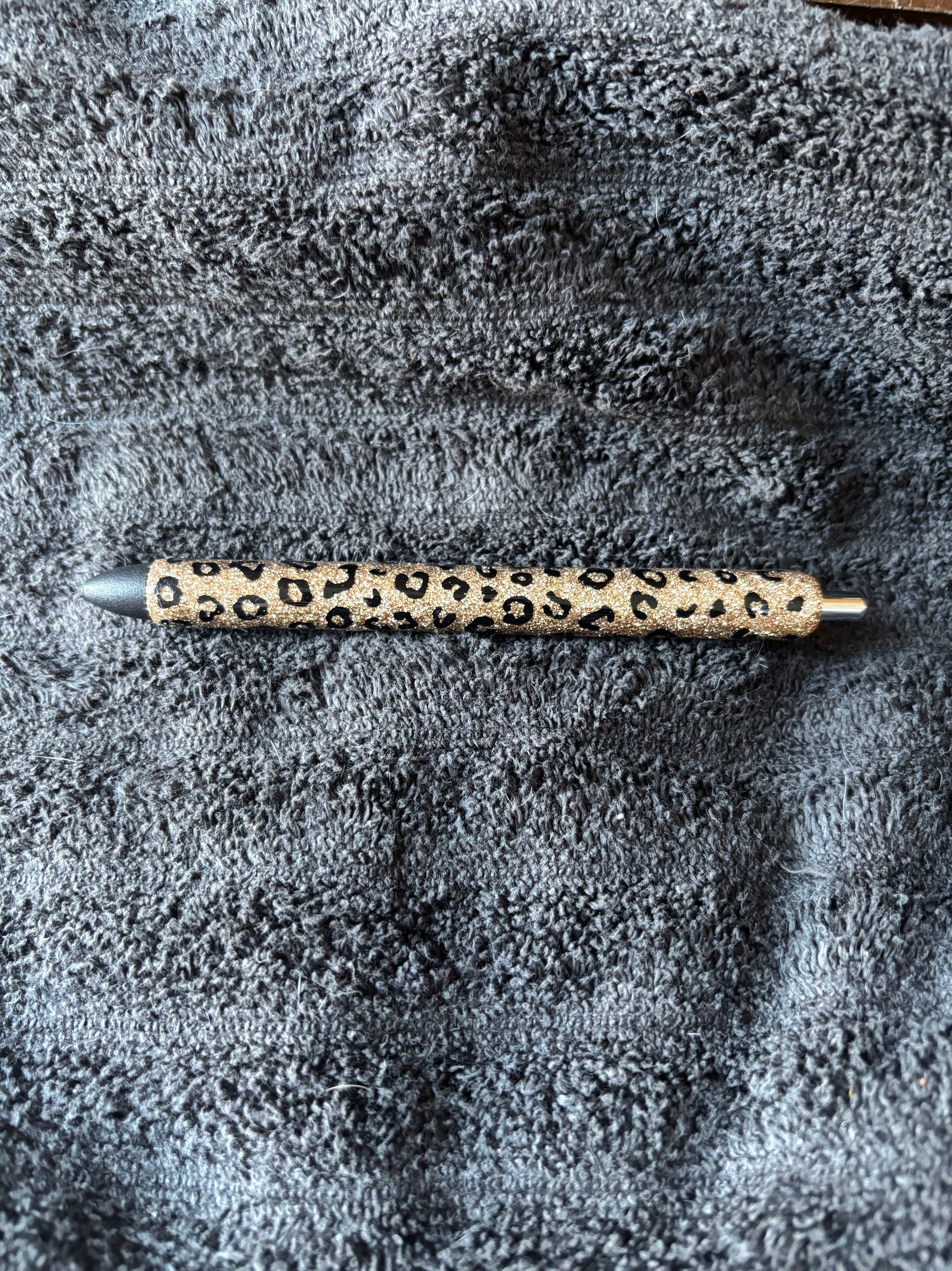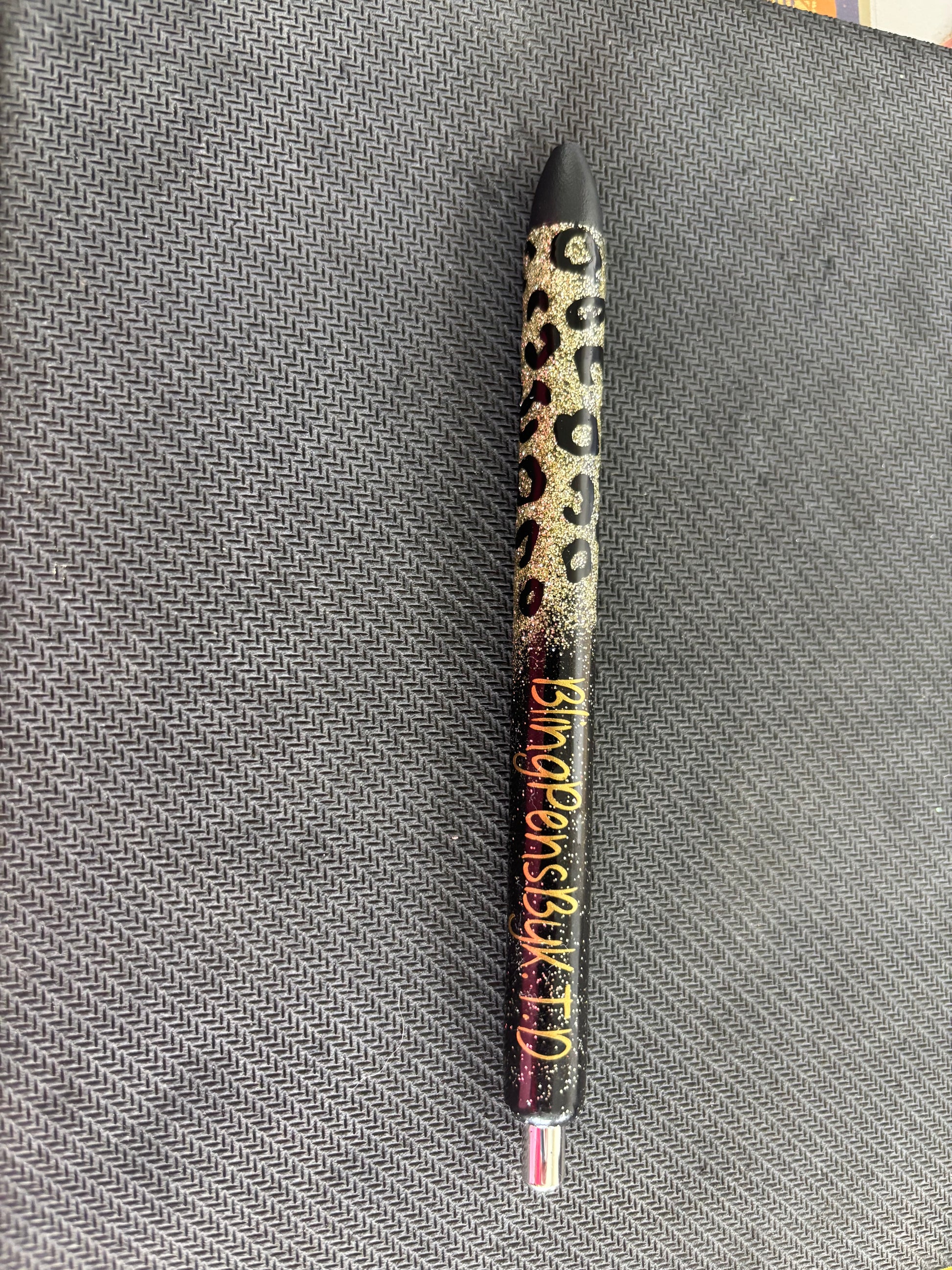 This pen can be full leopard, or half leopard with a name. You pick the glitter color. You can add a name or not.
